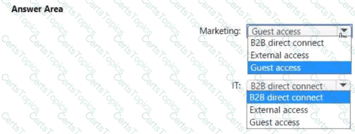 Which type of access should you recommend for each department? To answer, select the appropriate options in the answer area. NOTE: Each correct selection is worth one point.