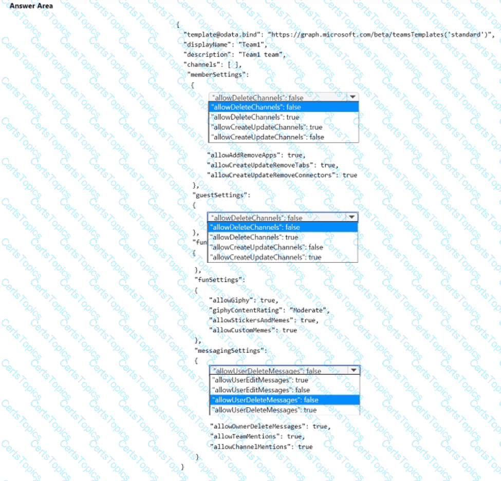 How should you complete the template? To answer, select the appropriate options in the answer area.