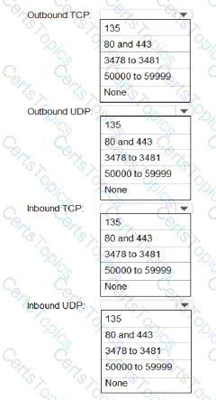 Which inbound and outbound ports should you recommend? To answer, select the appropriate options in the answer area.