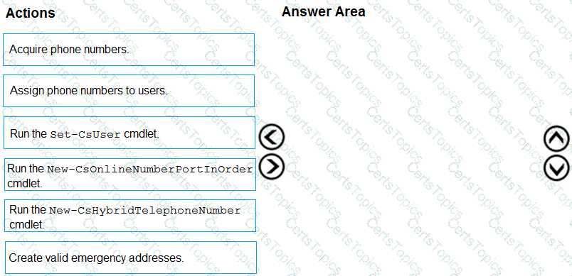Solution: From the Microsoft Teams admin center, you place a new order for user numbers.