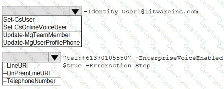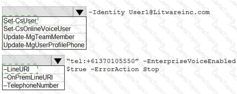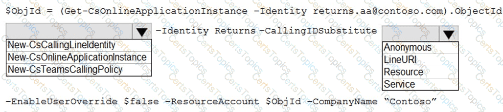 How should you complete the PowerShell command? To answer, select the appropriate options in the answer area.