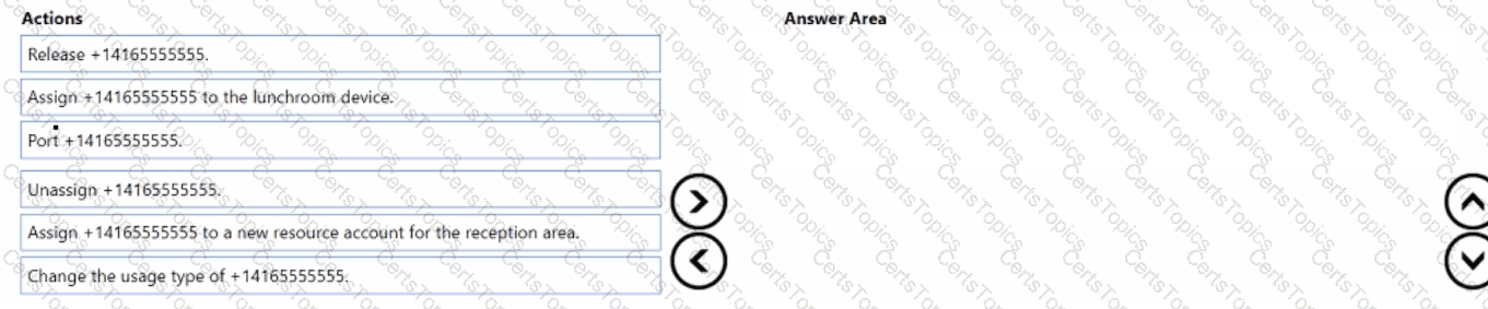 Which four actions should you perform in sequence to minimize user call disruption? To answer, move the appropriate actions from the list of actions to the answer area and arrange them in the correct order.