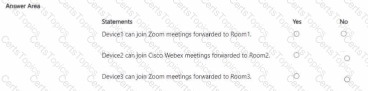 You have a Microsoft 365 E5 subscription that is linked to a Microsoft Entra tenant. The tenant contains the Microsoft Teams Rooms accounts shown in the following table.
