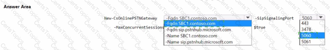 You are deploying Direct Routing by using a certified Session Border ControNer CSBC). The FQDN of the SBC is sbc1.contoso.com. You use signaling port 5067.
