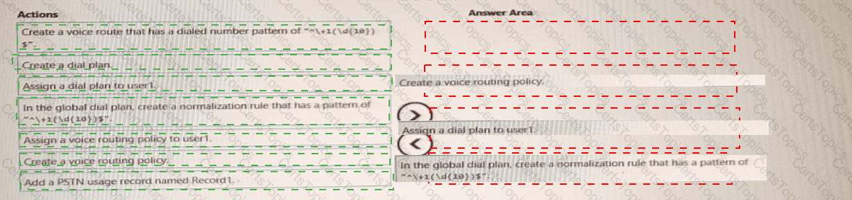 You need to configure voice routing for Direct Routing. The solution must only allow calling within the United States and Canada for a user named user1 ©contosoxom.