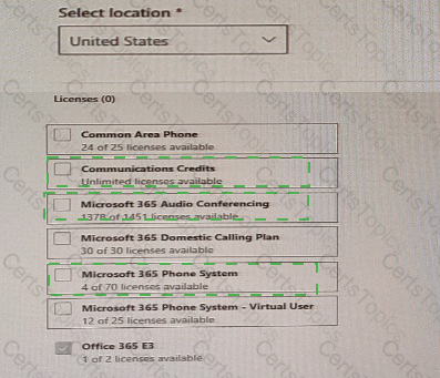 Which three licenses should you assign? To answer, select the licenses in the answer area.