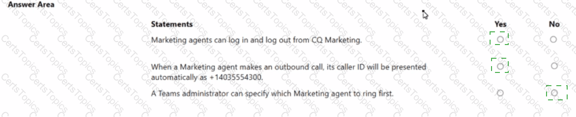 For each of the following statements, select Yes if the statement is true. Otherwise, select No.