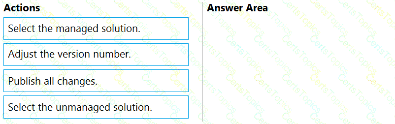 Which three actions should you perform in sequence? To answer, move all actions from the list of actions to the answer area and arrange them m the correct order.