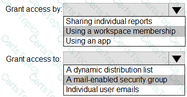 Solution: In Microsoft Azure Active Directory (Azure AD), part of Microsoft Entra. you create a group that contains all the users. You share each selected report and the one dashboard to the group.