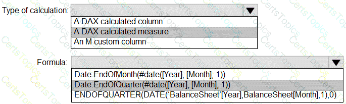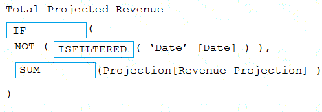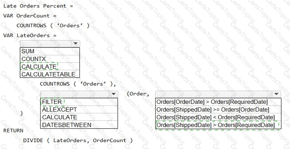 How should you complete the DAX expression? To answer, select the appropriate options in the answer area.