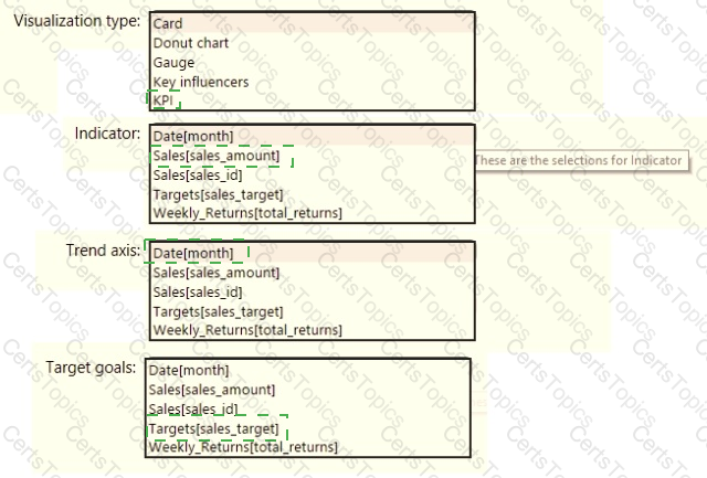 How should you create the visualization? To answer, select the appropriate options in the answer area.