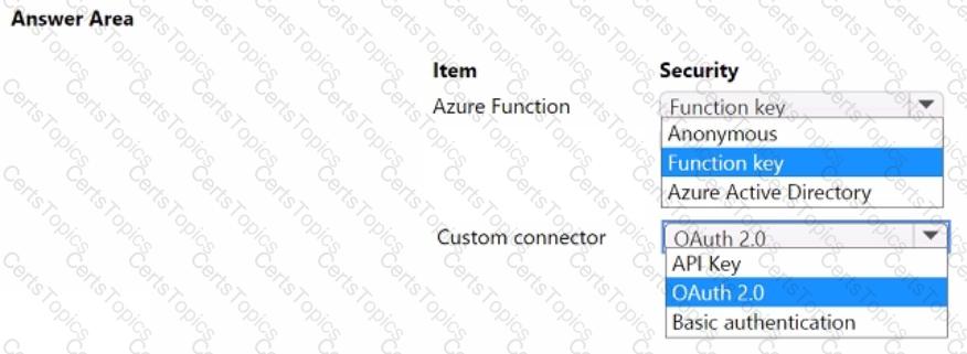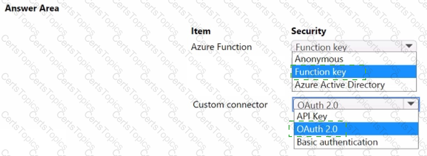 You need to configure security for the Azure Function and custom connector.