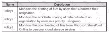 You need to create the Microsoft Purview insider risk management policies shown in the following table.