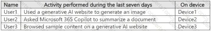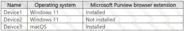 You have a Microsoft 365 E5 subscription. The subscription contains devices that are onboarded to Microsoft Purview and configured as shown in the following table.
