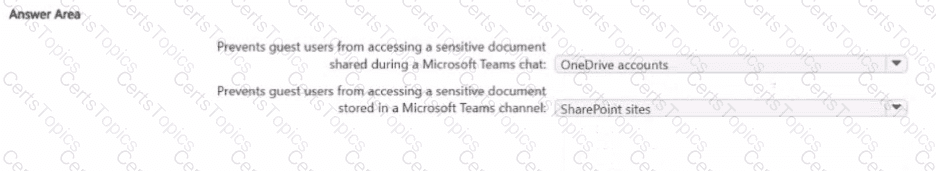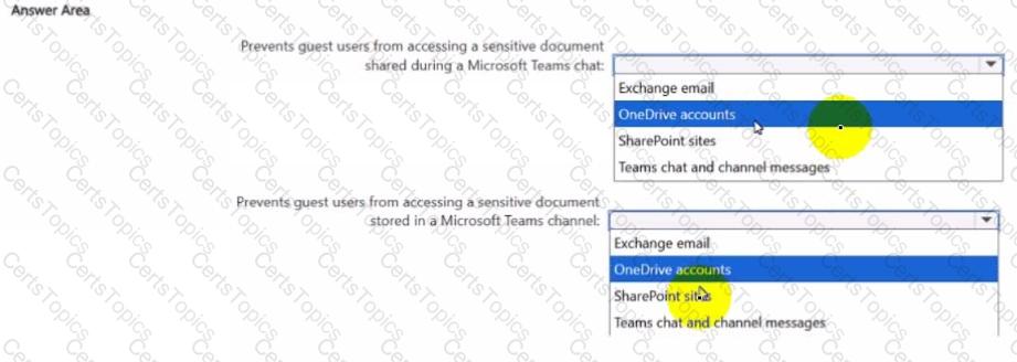 • Prevents guest users from accessing a sensitive document stored in a Microsoft Team? channel