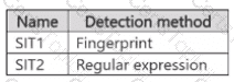You have a Microsoft 365 E5 subscription that contains the sensitive information types (SITs) shown in the following table.