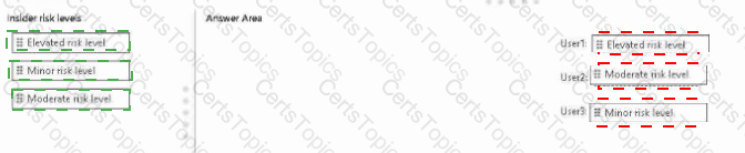 Which insider risk level is assigned to each user? To answer, drag the appropriate levels to the correct users. Each level may be used once, more than once, or not at all. You may need to drag the split bar between panes or seroll to view content.