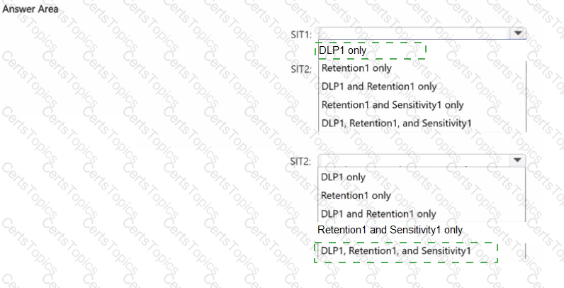 Which policies can use SIT1. and which policies can use SIT2? To answer, select the appropriate options in the answer area.