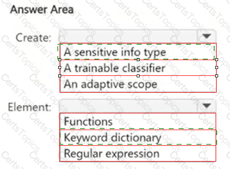 What should you create in the Microsoft Purview portal, and which type of element should you select? To answer, select the appropriate options in the answer area.