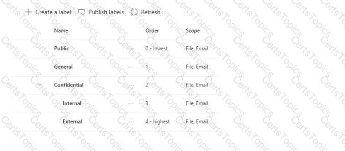 You have sensitivity labels as shown in the Sensitivity Labels exhibit. (Click the Sensitivity Labels tab.)