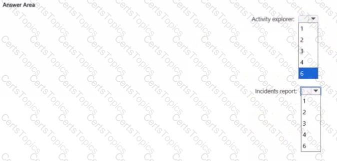 How many DIP policy matches events will be added to Activity explorer, and how many policy matches will be added to the DLP incidents report? To answer, select the appropriate options m the answer area.