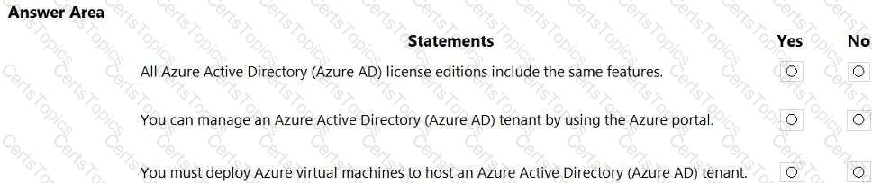 For each of the following statements, select Yes if the statement is true. Otherwise, select No.