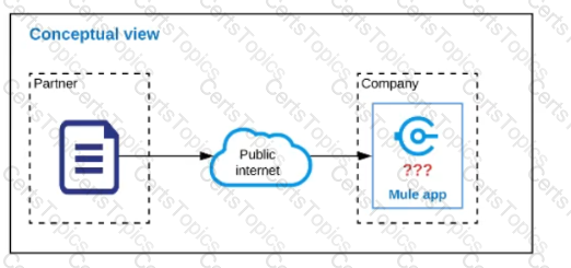 An organization is designing a Mule application to receive data from one external business partner. The two companies currently have no shared IT infrastructure and do not want to establish one. Instead, all communication should be over the public internet (with no VPN).