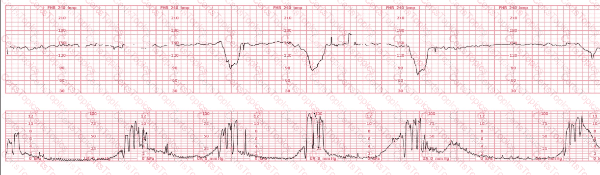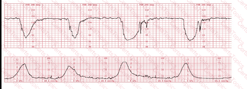 The decelerations seen in the fetal monitoring tracing shown are best described as: