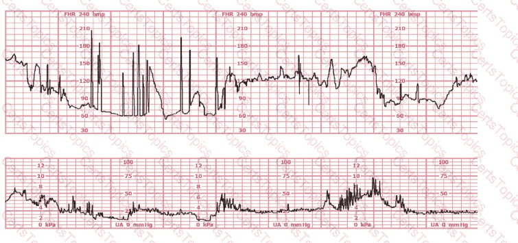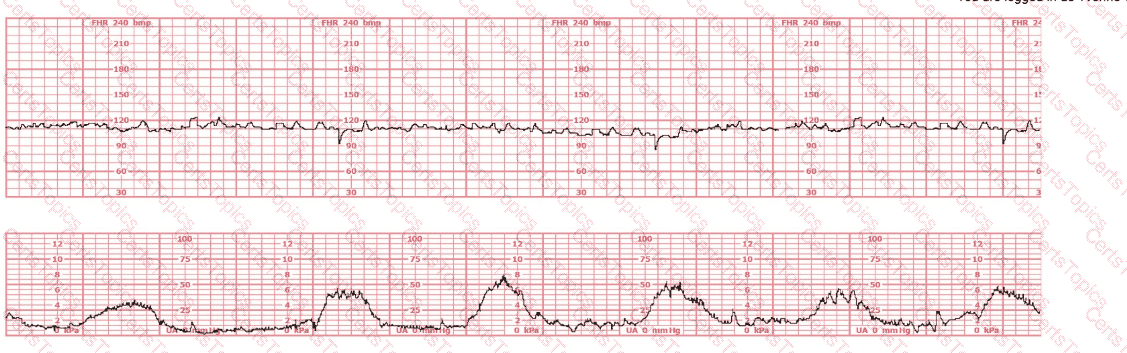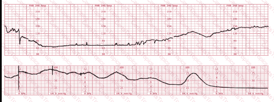 Based on the fetal heart rate tracing shown, the expected fetal pH would be: