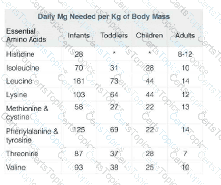The table below shows the average daily requirements of essential amino acids in the diet at various stages of human life.