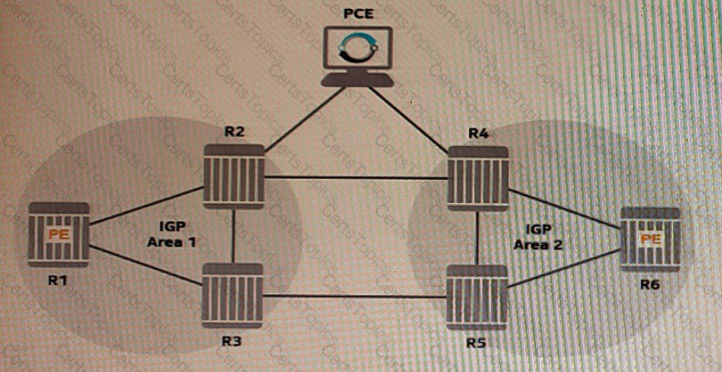 Based on the exhibit, which of the following is a viable option for the Path Computation Element (PCE) to obtain all the necessary topology and traffic-engineering information from the network, so that it can calculate LSP paths on behalf of the PE routers?
