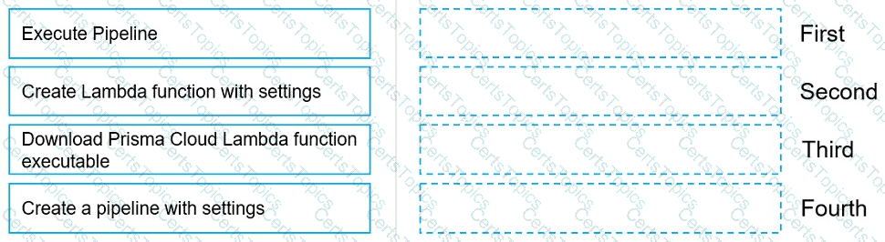 Move the steps to the correct order to set up and execute a serverless scan using AWS DevOps.