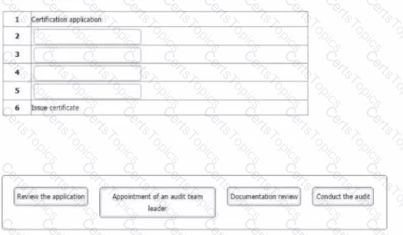The following options show key actions involved in a third-party audit. They are not in order. Order the stages in the table to show the sequence in which the actions should take place.