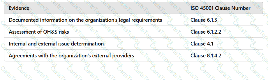 During an internal audit of an OHSMS, what evidence would the auditor look for to demonstrate conformity to ISO 45001? Match each item with the correct ISO 45001 clause number.