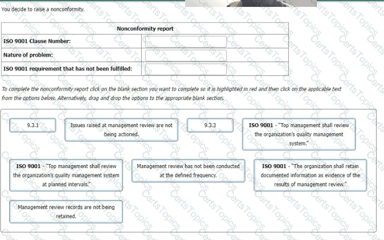 click on the ISO 9001 clauses listed below. Alternatively, drag and drop each clause to show which step the