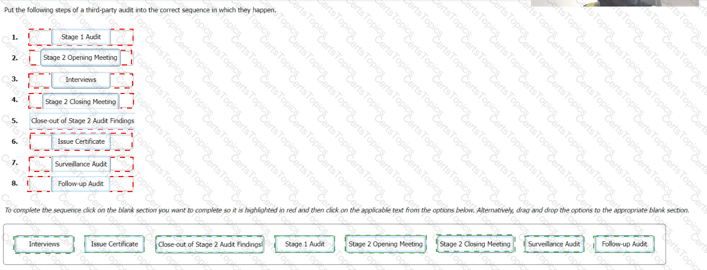 In the context of a third-party management system certification audit, which two of the following statements are correct?