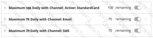 A financial services organization introduces a new policy that limits each customer to two promotional emails per month. To meet compliance requirements, the implementation team must configure this limit in the Next-Best-Action Designer.