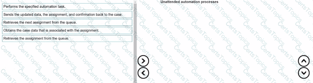 Unattended automations, when run. follow a basic process flow. Arrange the following steps in the order in which unattended automation topic processes a case.