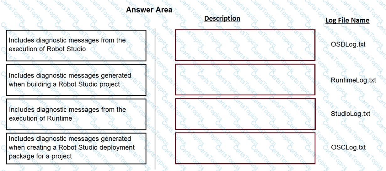 In the Answer Area, drag the description of the log file on the left to its correct log file name.