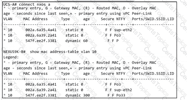 Refer to me exhibit An engineer is troubleshooting a connectivity issue for a VM with MAC address 00:50:56:88:10:14 running on me cisco UCS-8 Series blade in VLAN 10. Cisco DCS Manager is connected to a Cisco nexus 9000 Series switch over port channel 10. Currently, the VM Is unreachable from any source that Is outside of me Cisco UCS domain. Which action musí be takenlo allow me VM to be readable?