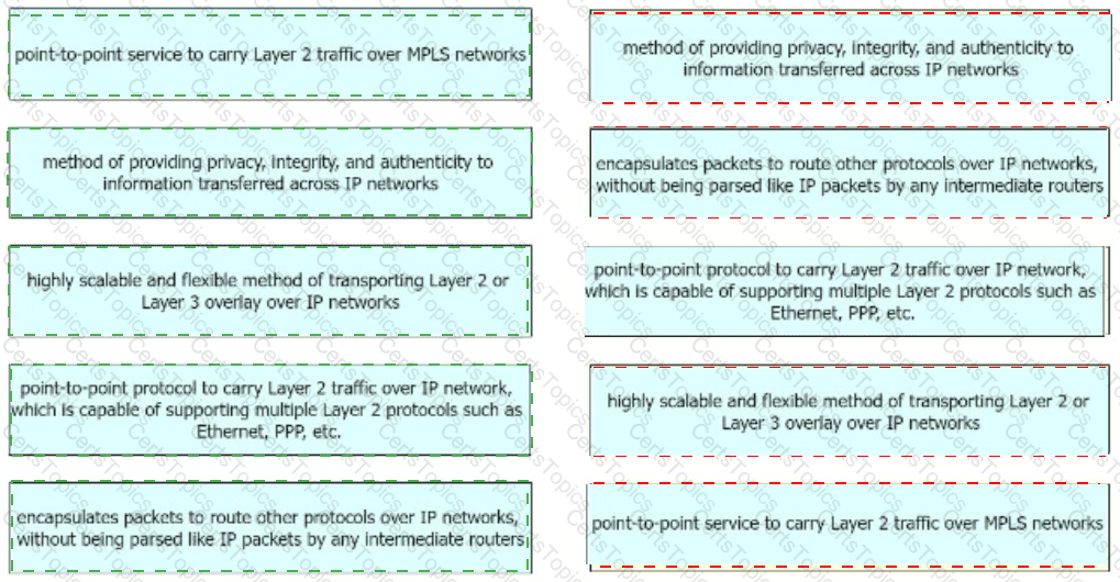 Drag and drop the right functional descriptions from the left onto the corresponding protocols on the right.