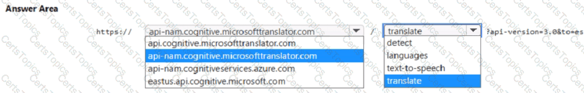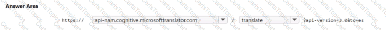 You need to use the Text Translation REST API to perform the translation. The solution must ensure that you have data sovereignty in the United States.