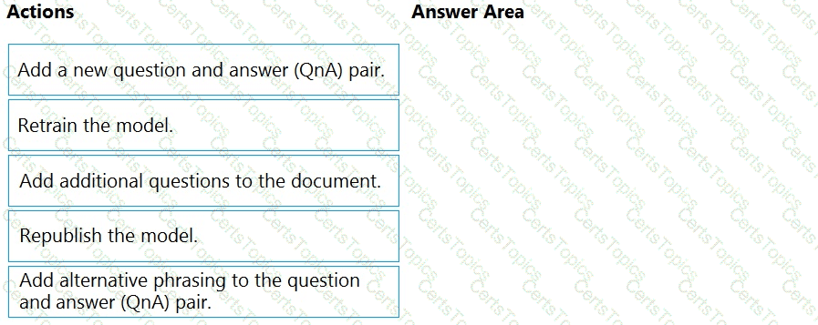 Which three actions should you perform in sequence? To answer, move the appropriate actions from the list of actions to the answer area and arrange them in the correct order.