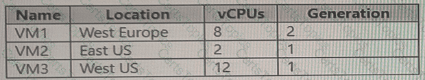 You have an Azure subscription that contains the virtual machines shown in the following table.
