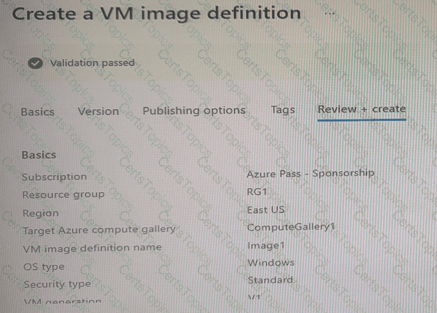 You create an Azure Compute Gallery as shown in the Azure compute gallery exhibit. (Click the Azure compute gallery tab.)
