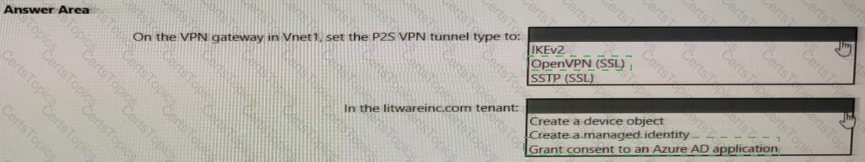 You need to implement a P2S VPN for the users in the branch office. The solution must meet the hybrid networking requirements.