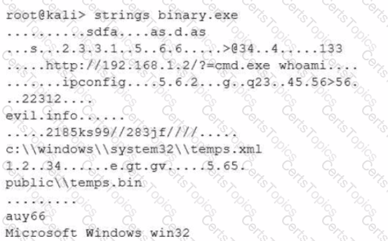 After a cybersecurity incident, a security analyst was able to collect a binary that the attacker used on the compromised server. Then the analyst ran the following command: