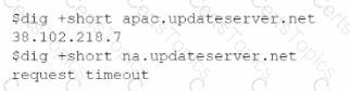 A newly configured VM fails to run application updates despite having internet access. The updates download automatically from a third-party network. Given the following output: