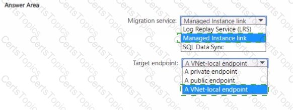 You need to recommend which service and target endpoint to use when migrating the databases from SVR1 to Instance1. The solution must meet the availability requirements.