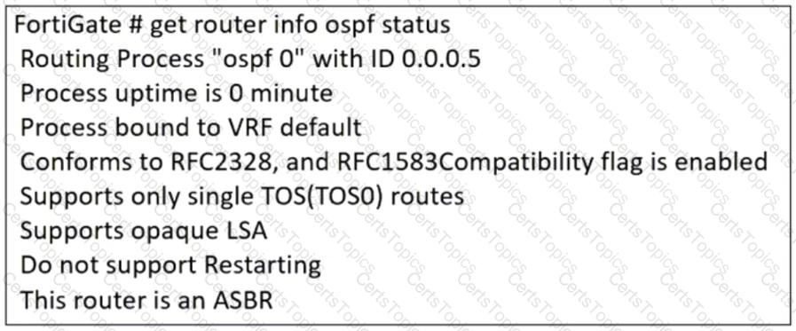 An administrator is checking the OSPF status of a FortiGate device and receives the output shown in the exhibit.